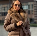 Пуховик женский, на пуху с отделкой из меха соболя
