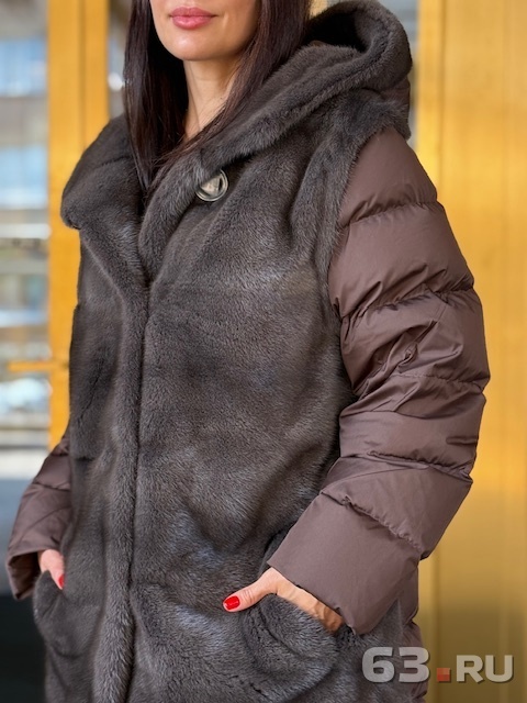 Натуральная норка: Роскошный мех норки придает пуховику изысканность и элегантность, а также обеспечивает превосходную теплоизоляцию.