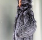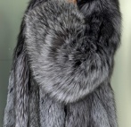 Мех: Натуральная чернобурая лиса, отличающаяся густым, набитым ворсом и неповторимым переливом оттенков.
