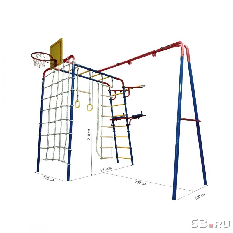 Уличный детский спортивный комплекс "Макси с Сеткой" представляет собой достаточно функциональную конструкцию, где удачно разместились несколько основных элементов: качели; кольца с перекладиной, турник, рукоход, канат, веревочная лестница, баскетбольный щит, брусья, сетка для лазания. Здесь могут одновременно играть несколько детей разного возраста. При этом они совершенно не будут мешать друг другу, а могут, напротив, совместно проводить время, поочередно выполняя различные упражнения, соревнуясь в ловкости, скорости, выносливости и силе. И вы можете не беспокоиться о том, что в порыве игры дети травмируют себя недостаточно надежными элементам. Комплекс представляет собой надежную конструкцию, способную выдерживать пользователя весом до 100 кг, прочные стойки и качественное соединение элементов выдерживают любые условия эксплуатации.В комплекте имеются установочные стаканы для бетонирования комплекса.Технические характеристики:Стойки - труба диаметр 42 мм.Длина перекладины: 450 мм, труба диаметр 25 мм.Габаритные размеры (ВхШхД): 2100х2100х3200 мм.Габариты сидения цепных качелей:Спинка (ШхВ): 330х135 мм.Сидение (ШхД): 330х330 мм.Допустимая нагрузка: до 100 кг.Допустимая нагрузка на качели: до 50 кг.Габариты упаковки: 4 места (коробки) 1,22х0,44х0,14 м., 73 кг.Гарантийный срок: 12 месяцев.Комплектация навесного оборудования:- Качели (на выбор),- Кольца с перекладиной,- Канат,- Турник регулируемый,- Брусья,- Баскетбольное кольцо со щитом и сеткой,- Веревочная лестница- Сетка для лазанияОбратите внимание! Уличные ДСК из данного раздела предназначены для индивидуального использования, например в частном доме или на даче, но не подойдут для площадок общего пользования (МКД, школы, детские сады и т.п.).