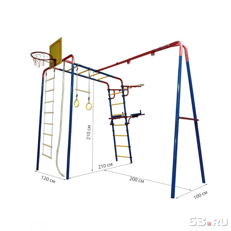 В последнее время даже во время прогулок на улице дети используют гаджеты, избегая активных нагрузок. Быть может, потому что у них нет достойной замены? Уличный десткий спортивный комплекс Макси способен решить эту проблему, такой отдых привлечет и совсем малышей, и детей постарше.Уличный ДСК Макси представляет собой достаточно функциональную конструкцию, где удачно разместились несколько основных элементов: качели; кольца с перекладиной, турник, рукоход, канат, веревочная лестница, баскетбольный щит, брусья. Здесь могут одновременно играть несколько детей разного возраста. При этом они совершенно не будут мешать друг другу, а могут, напротив, совместно проводить время, поочередно выполняя различные упражнения, соревнуясь в ловкости, скорости, выносливости и силе. И вы можете не беспокоиться о том, что в порыве игры дети травмируют себя недостаточно надежными элементам. Комплекс представляет собой надежную конструкцию, способную выдерживать пользователя весом до 100 кг, прочные стойки и качественное соединение элементов выдерживают любые условия эксплуатации.В комплекте имеются установочные стаканы для бетонирования комплекса.Технические характеристики:Стойки - труба диаметр 42 мм.Длина перекладины: 450 мм, труба диаметр 25 мм.Габаритные размеры (ВхШхД): 2100х2100х3200 мм.Габариты сидения цепных качелей:Спинка (ШхВ): 330х135 мм.Сидение (ШхД): 330х330 мм.Допустимая нагрузка: до 100 кг.Допустимая нагрузка на качели: до 50 кг.Габариты упаковки: 4 места (коробки) 1,22х0,44х0,14 м., 70 кг.Гарантийный срок: 12 месяцев.Комплектация навесного оборудования:- Качели (на выбор),- Кольца с перекладиной,- Канат,- Турник регулируемый,- Брусья,- Баскетбольное кольцо со щитом и сеткой,- Веревочная лестницаВНИМАНИЕ! Спортивный комплекс не предназначен для установки и эксплуатации на общественных площадках и подходит только для частного пользования.
