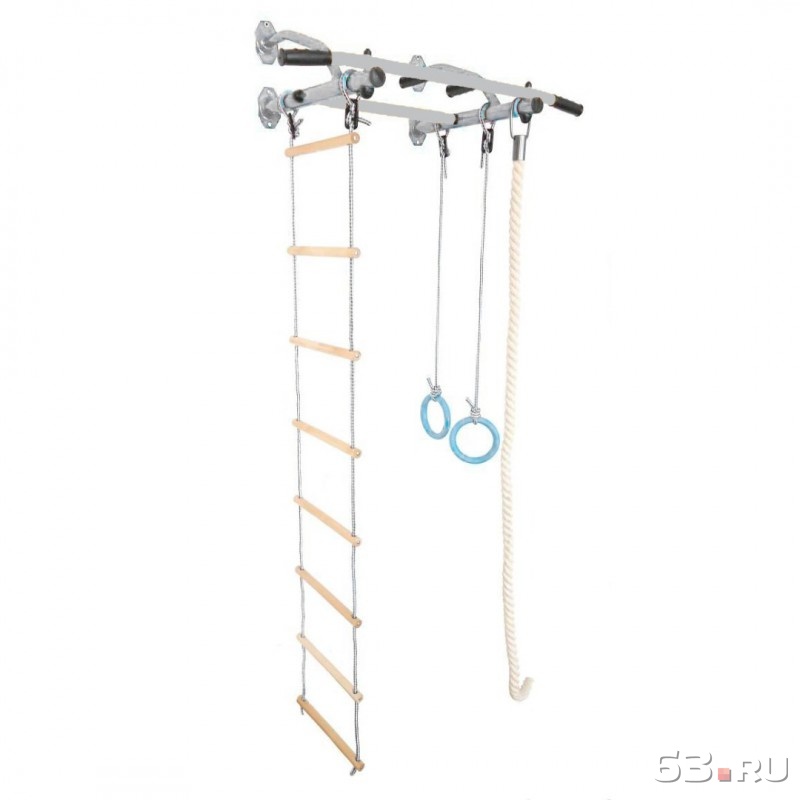 Мобильный спортивный комплекс весом 8 кг является универсальным снарядом, выдерживающим до 100 кг. Модель отличается компактностью, она не занимает много места в комнате. Крепление производится на стену с помощью 4-х анкеров. Монтировать установку можно на любой высоте.Думаете, что нельзя купить достаточно универсальный комплекс для упражнений?Спортивный комплекс включает веревочную лестницу, гимнастические кольца и канат. Присутствуют модели в красном, зеленом и синем цветовом исполнении.Снаряд безопасен, что обеспечивается наличием заглушек болтов, использованием натуральных прочных материалов и оптимизированной формой ручек. Слой ПВХ на ручках противодействует скольжению.Изделие прослужит владельцу длительный срок, протирание веревок замедляется благодаря особым пластмассовым катушкам. Товар, изготовленный в РФ, сертифицирован и продается с гарантией на 1 год.Упаковка: воздушно-пузырчатая пленка и плотный пятислойный гофрокартон.