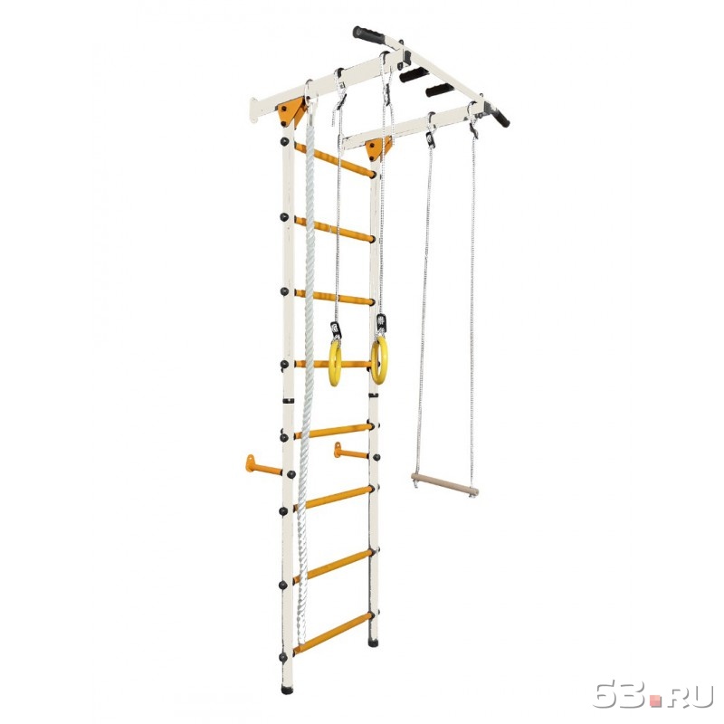 В данной модели воплощено все то, что позволит юному спортсмену активно заниматься спортом, не покидая пределов своей квартиры. Это лестница с удобными перекладинами и турник с эргономичными ручками для качественного и безопасного захвата. Наличие дополнительного навесного оборудования позволяет значительно расширить функционал этого спортивного комплекса, использовать его и в качестве компактного инструмента для активных игр. Шведская стенка включает в себя:канат, выполненный из натурального хлопчатобумажного материала, он мягкий и прочный, не вызывает аллергии;гимнастические кольца из ударопрочного пластика, фиксируются на плотной 10-мм веревке с помощью безузловых элементов;трапеция, также закреплена на прочной 10-мм веревке.Шведская стенка имеет 4-х точечное крепление к стене, что позволяет установить ее практически в любой комнате, независимо от высоты помещения, качества полового покрытия и типа потолочной отделки.Изделие имеет яркое оформление, насыщенные синие, красные и зеленые цвета, которые понравятся ребенку. Комплекс предназначен для использования внутри помещений с высотой потолка неменее 2,3 м, для детей старше 3-х лет.Турник не регулируется по высоте, а покрытие перекладин шведской стенки с ПВХ покрытием.Гарантия на сертифицированную продукцию действует в течение 1 года.Упаковка: воздушно-пузырчатая пленка и плотный пятислойный гофроподдон эталонного (очень прочного) качества.Для безопасности занятий на комплексе, рекомендуем добавить к заказу гимнастический мат.